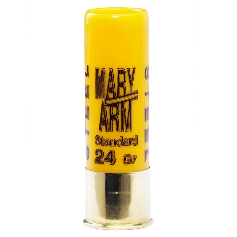 Conçue pour la chasse du gibier d’eau.La cartouche STEEL 24 de Mary Arm est une cartouche de chasse en calibre 20/70 avec bourre spéciale Acier, chargée de 24 grammes de grenailles d’Acier mélangées N° 5 + 6.
